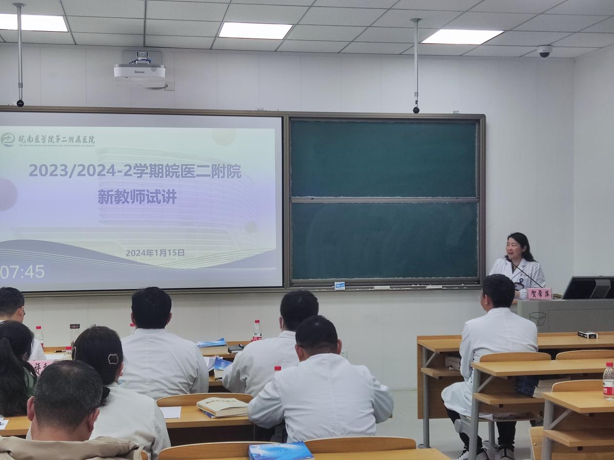 1月15日下午,TapTap点点官方网站第二附属医院教研室在5号楼四楼智慧教室(二),举行2023/2024-2学期新教师试讲,医院部分教学督导组专家、教研室主任共同担任评委。校教学督导组成员,医院教育处主任贺常萍主持会议,并担任评委组组长。