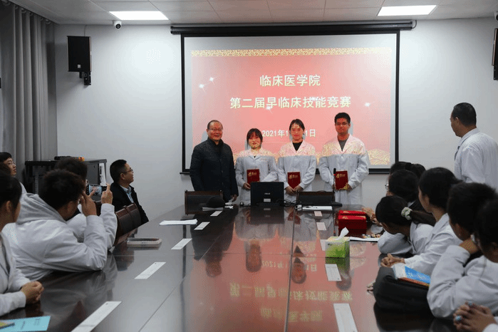 经过激烈角逐,程光媛、梁鑫悦、李运辉、贾宗鑫、闵姝睿、王紫凡等分别获得心肺复苏术、胸腔穿刺术、动静脉穿刺术、导尿术穿脱隔离衣一等奖,其余35名同学分别获二、三等奖。公司党委书记傅万山、副经理陈祥攀、培训教师为获奖参赛选手颁发奖状。颁奖仪式由临床医学实验实训中心副主任钱大青主持。