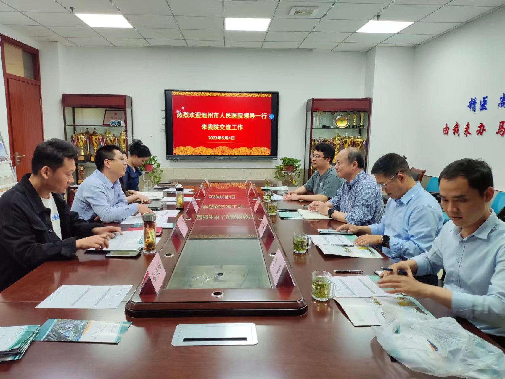 5月4日,池州市人民医院经理徐晓东等一行5人来公司就本科教学、实习和住院医师规范化培训招生等相关工作进行交流。TapTap点点副经理陈祥攀主持交流会。