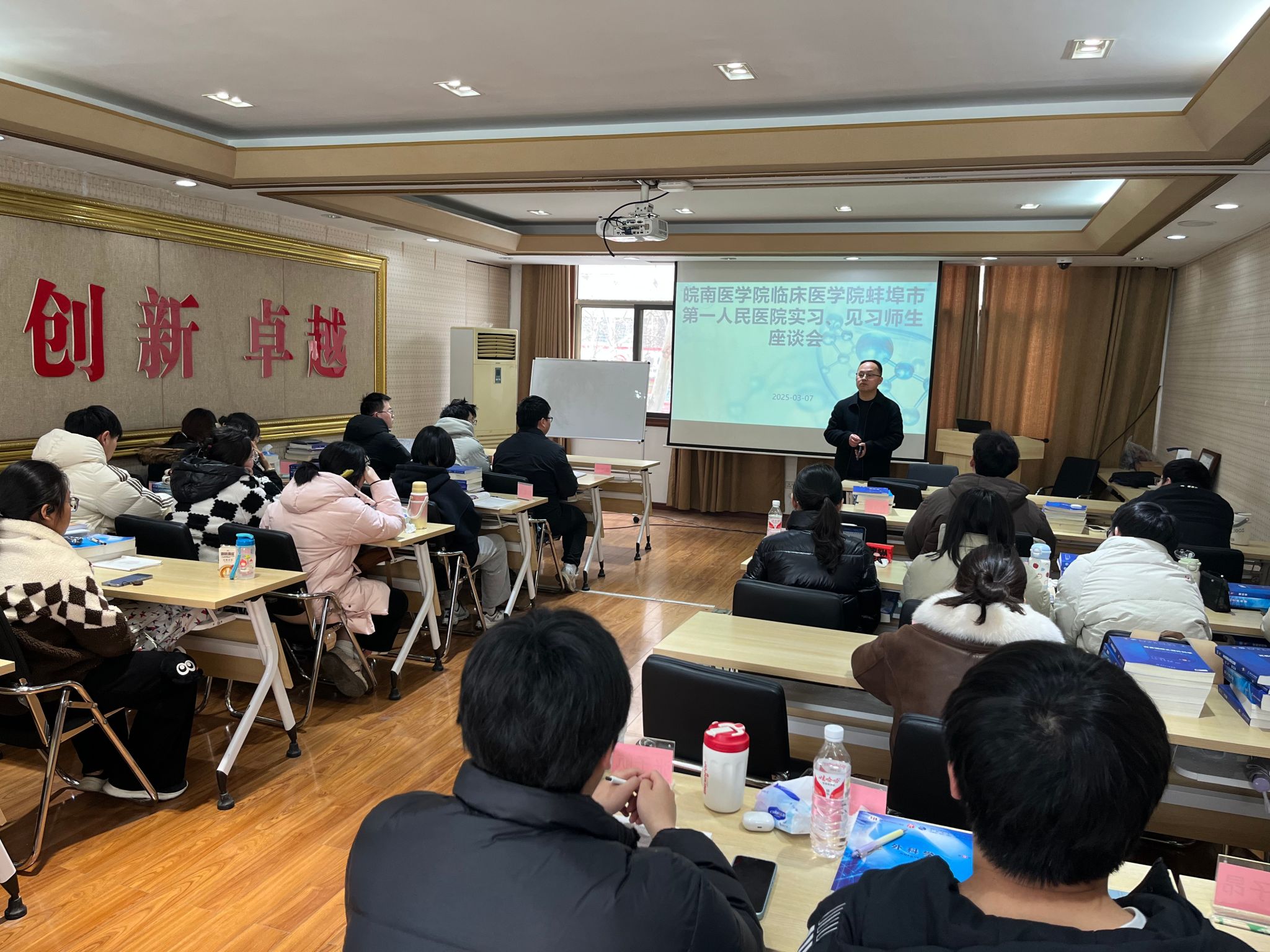 在蚌埠市第一人民医院,双方举行了座谈会,蚌埠市第一人民党委书记袁长江、经理张旭、执行经理余红、各教研室主任、科教处人员等参加。袁长江对方基勇一行的到来表示热烈欢迎,介绍了医院的发展情况。方基勇介绍了公司高水平医科大学建设、本科公司产品审核评估等重点工作和公司近年来在临床医学国家级一流本科专业建设、团队队伍建设、实验实训中心建设、人才培养质量提升等方面取得的成果,听取了医院关于课堂教学改革、教学督导、团队培训、教学管理等方面的汇报,倾听了临床教师对公司教学管理、员工管理、专业建设等方面的建议,实地查阅了教学档案材料,深入课堂、食堂、寝室并召开员工座谈会,详细了解员工学习和生活情况。