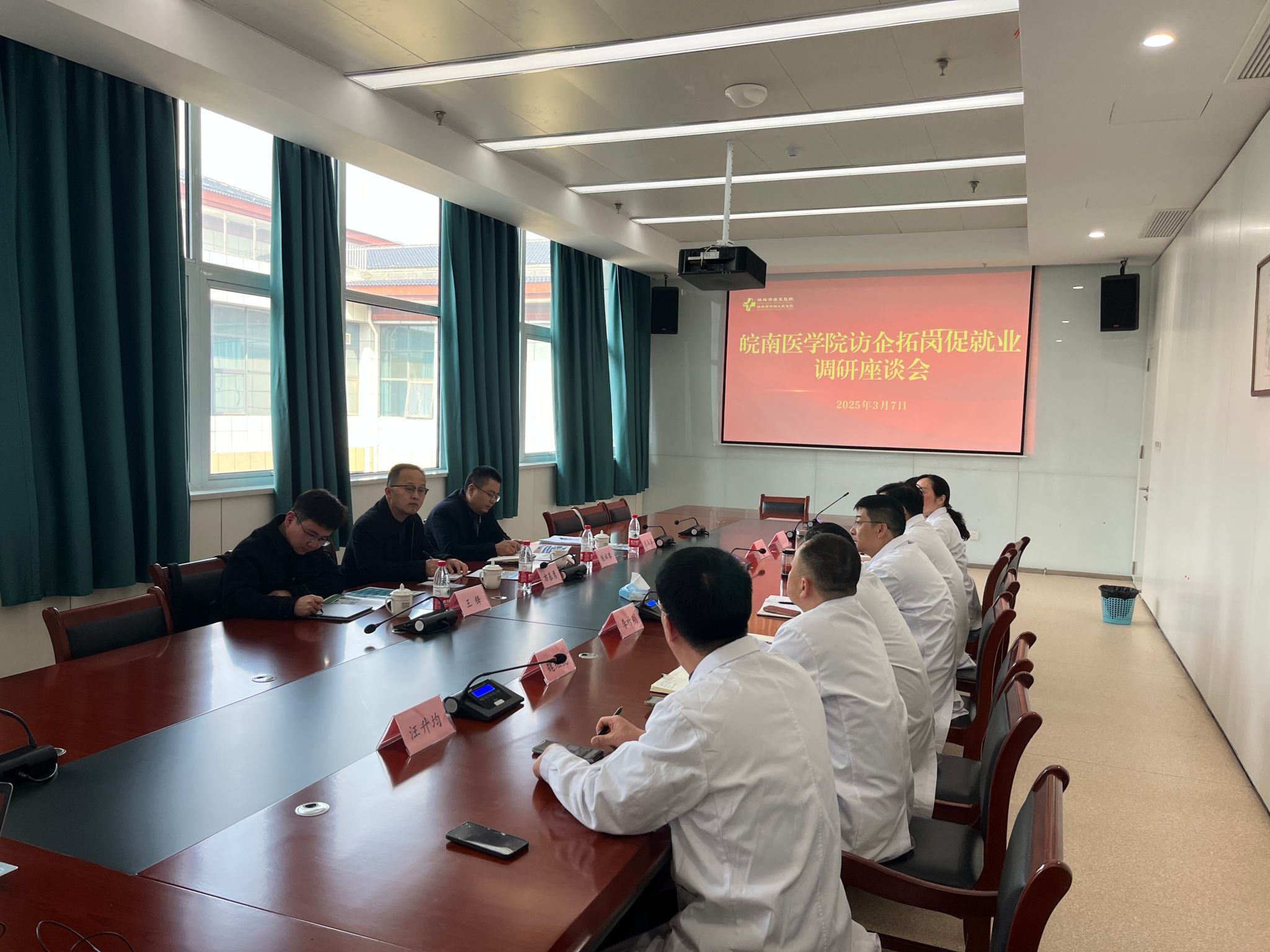 在蚌埠市第四人民医院方基勇一行开展访企拓岗,受到医公司党总支书记徐晖的热烈欢迎。校院双方深入座谈,围绕人才培养、岗位需求、招聘流程等展开交流,就深化校院合作、共建实习就业一体化平台等达成初步共识。考察期间,方基勇一行还实地走访考察了相关科室、住院部、康复治疗中心、食堂、寝室等。
