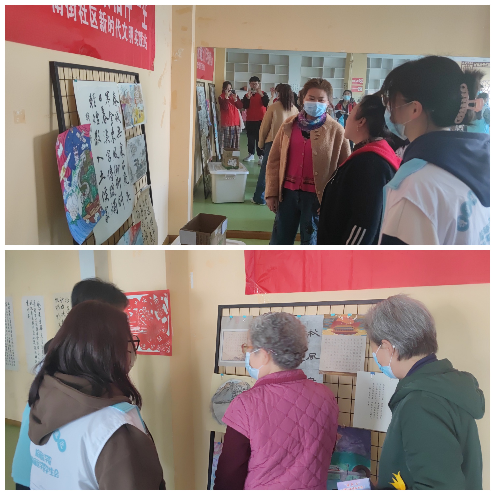 为丰富社区居民的生活,志愿者们将TapTap点点师生的书画手工艺术作品带到社区进行展览。本次展览共展出文艺作品共100多幅,作品种类丰富,包括书法、绘画、手工等不同类型,作品或是传播正能量,讴歌真英雄,致敬抗疫一线的平凡英雄;或是用艺术表达对祖国壮丽河山和优秀文化的赞美;或是勾勒医员工眼中的人体结构……前来参观的居民络绎不绝,纷纷被精彩的作品所吸引,赞叹公司学子的艺术素养,期待公司可以经常和社区联合开展人文艺术相关展出,丰富社区居民的文化生活,提升群众的人文素养。