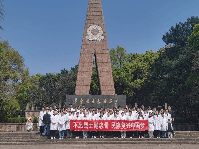 两位支部书记带领同学们瞻仰了革命烈士纪念碑,组织同学们肃立默哀。同学们逐一来到革命烈士纪念碑前献花,向革命先烈致敬;参观烈士陵园陈列馆,了解一段段革命史实,深刻感受那段烽火硝烟的光辉岁月,见证革命志士英勇不屈的抗争。最后,全体党员在党旗面前重温入党誓词,进一步坚定入党信念与入党初心。