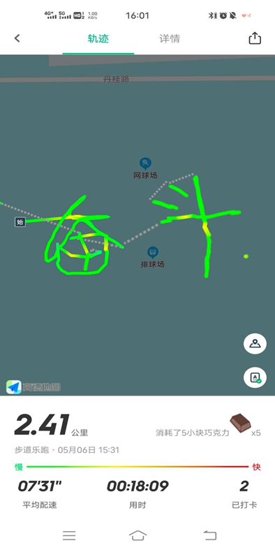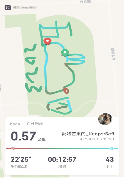 “青”绘我行活动吸引了众多热爱运动的青年人,同学们运用步道乐跑、Keep等运动打卡软件记录自己的运动轨迹,通过“绘制”有特色有意义的精美图案来庆祝五四青年节的到来,用轨迹描绘青春道路。