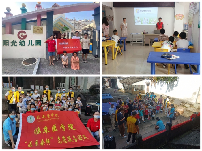 为深入贯彻落实习近平总书记关于青年工作的重要思想,引导和帮助广大青年员工上好理论与现实相结合的“大思政课”,在社会课堂中受教育、长才干、作贡献,在观察实践中学党史、强信念、跟党走,努力成为担当民族复兴大任的时代新人,以实际行动庆祝中国共产党成立100周年,暑期期间,2019级组建实践团队67支,并遴选出“微尘”和“医系桑梓”2支重点队伍,,组织约750名志愿者奔赴安徽、江苏、新疆等多个省份的基层、社区和乡村,以团队为主、个人为辅的实践方式,积极开展以理论宣讲、关爱留守儿童、关爱空巢老人、疫苗接种等志愿服务为主题的社会实践活动,受到安徽日报、黄山日报、黄山团市委、芜湖民生网等多家媒体的报道。