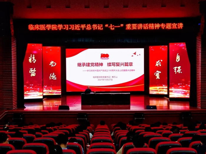 傅万山以“继承建党精神 续写复兴篇章”为题,从中国共产党走过的百年光辉历程、伟大建党精神的深刻含义、坚持“九个必须”擘画美好未来、习近平总书记对广大青年的寄语这四个方面,结合历史发展和时代进程,详细阐述了习近平总书记“七一”重要讲话精神的内涵和实质,系统阐释了“七一”重要讲话的新论断、新概况。