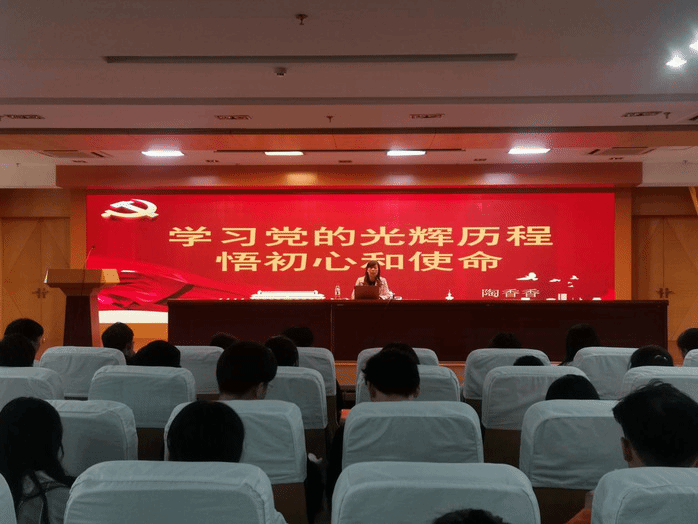 4月29日,陶香香以《学习党的光辉历程,悟初心和使命》为主题讲授党课。她以中国共产党百年奋斗历程为主线,融入了大量史实资料与人物事迹,向学员们展示了党的奋斗历程和共产党人的初心使命。她要求全体学员要锤炼自身修养、做好表率,深刻领会学习党史的重要意义,从中汲取奋进的力量,真正做到学史明理、学史增信、学史崇德、学史力行,不忘初心、牢记使命。