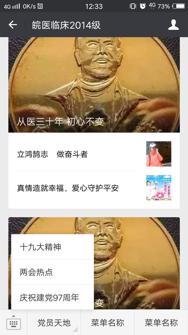 以榜样引领、见贤思齐,员工第三党支部组织各党小组在实习医院开展“向身边榜样看齐”活动,号召党员们学习和宣传身边优秀共产党员先进事迹,如学习“从医三十年、初心不变”的“白求恩”奖章获得者-安庆市第一人民医院医生严卫国、“真情造就幸福,爱心守护平安”的马鞍山市中心医院ICU护士长史秀凤、“乐于奉献 、严谨治学”的芜湖市第二人民医院医生杭健等带教老师的先进事迹,学习他们的高尚医德、无私奉献的精神和高超精湛的医术,同时支部将各实习单位优秀带教老师的先进事迹推送到“皖医临床2014级”微信公众号平台,充分发挥优秀教师的榜样力量,引领青年员工爱岗敬业,践行社会主义核心价值观。