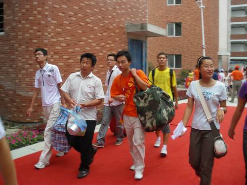 11日上午7点,系团委的志愿者们来到指定的地点,搭好咨询台,为到校的新生做好各项服务工作。迎新的过程中,不断有家长前来咨询台咨询校园情况,系团委成员们耐心而又细致的为新生及家长讲解校园环境。遇到提着行李的新生家长,爱心小分队的成员们主动上前帮忙,提包搬行李。家长们被志愿者热情而又周到的服务所感动,连声道谢。