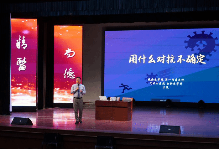 王箴以“用什么对抗不确定性”为题,通过《中国老员工成长白皮书》与《中国国民心理健康报告》引出老员工普遍面临的焦虑问题,结合“黑天鹅”“灰犀牛”等诸多事件及其本人学习、工作经历,帮助同学们认识引发和解决焦虑的关键在于自我认知和自我调剂。随后,他通过分享员工事迹,与同学们交流了提升自我认知的方法,引导同学们运用小步快跑、快速迭代、抓住重点、掌握自学等方法,帮助自己快速合理定位,根据自我评估确定未来努力方向。