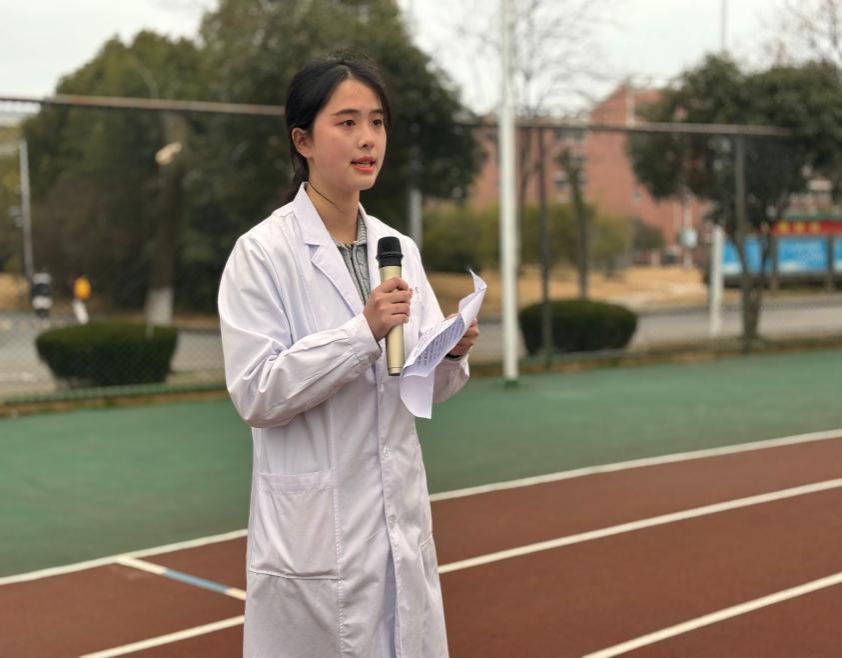 升旗仪式结束后,临床医学专业7班凌江惠同学作题为“以奋斗之名 续时代华章”的国旗下主题演讲。她带领同学们回顾了新中国成立以来,一批批优秀青年的奋斗事迹,激励同学们主动将小我融入大我,用奋斗实现人生理想,把青春献给祖国。