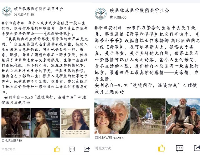 5月22日至5月25日期间,公司团委选择《放牛班的春天》《雨人》《风雨哈佛路》和《海蒂与爷爷》等四部情感治愈系影片,通过通过新媒体中心推荐给同学们。温暖治愈的剧情配合着老式胶卷一帧帧的演映,让人心也变得沉静下来,籍此希望同学们在居家隔离的日子里可以通过这些电影感受到人与人之间的亲情、友情和爱情,并且借此调整心态,一路扬帆前行。同学们踊跃发表观后感,表达对这几部电影的认识、看法以及自己观看后的感受。