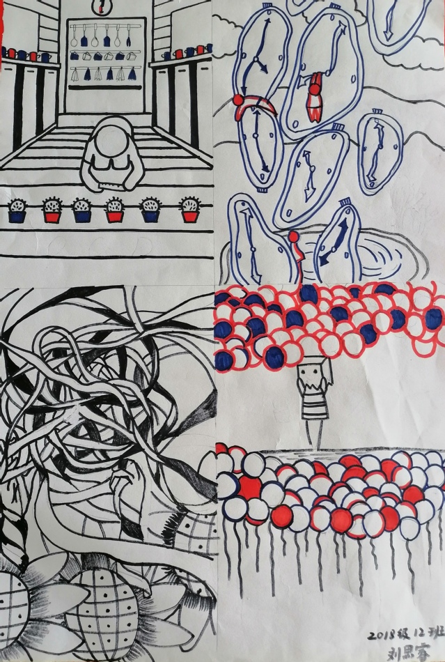 为激发员工创新精神,公司举办“心理涂鸦”活动。同学们捕捉灵感、发挥创意,通过将心理状态以绘画和海报的形式展现,生动形象地展示了当代老员工不同的心理状态,进一步提高了同学们对心理健康知识的学习和运用。