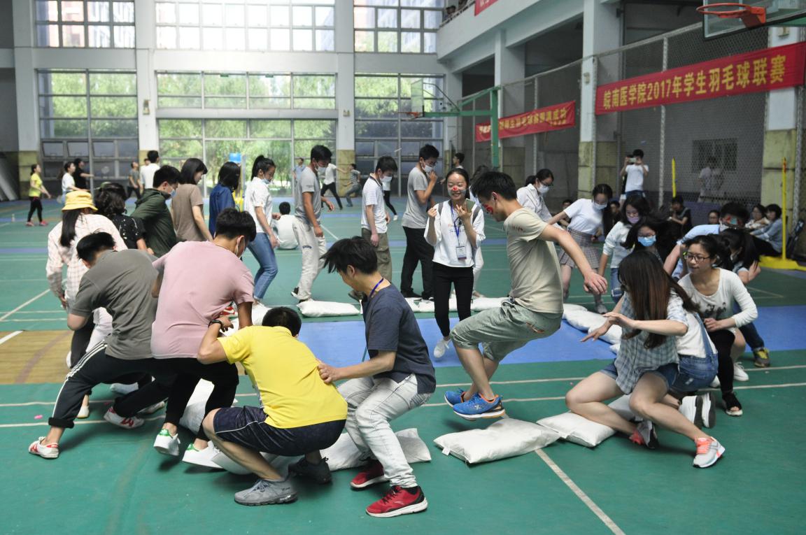经过前期的精心筹备,“抛开烦恼,快乐生活”枕头大战活动于5月13日下午两点正式“开战”。活动当天,现场布置精美,上千只气球布满体育馆。伴着动感十足的音乐和同学们的欢呼声,“地球大爆炸”、“谁动了我的枕头”、“枕头撞地球”等暖场游戏项目依次展开。中场休息时间,活力四射的青春热舞将活动气氛推向了高潮。随后,精彩有趣的游戏继续进行。个人项目“单挑英雄会”让同学们笑得开心,玩得尽兴;多人项目“两人三足”和“枕头森林”则让同学们感受到了团队协作的魅力。最后的“大混战”是本次活动的主体项目,同学们拿着枕头你追我赶,在漫天飞舞的羽毛中释放压力、交流感情、增进友谊。最后,枕头大战在同学们的欢声笑语中圆满落幕。