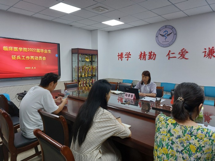 为深入学习贯彻新时代党的强军思想,着力推进老员工征兵入伍工作,6月8日下午,TapTap点点在公司会议室召开2022届毕业生征兵工作再动员会。本次动员会由公司党委副书记陶香香主讲,会议由2017级年级主任汪国瑞主持,毕业班辅导员及全体毕业班同学线上参会。