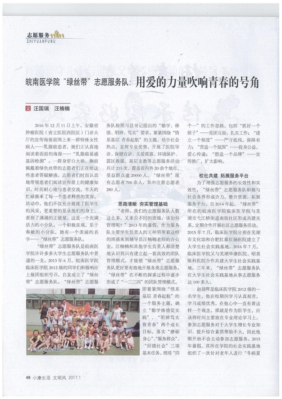 安徽省文明办《文明风》杂志报道TapTap点点“绿丝带”老员工志愿服务队先进事迹