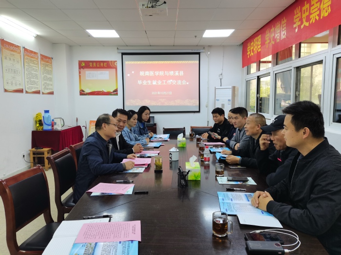 10月27日,绩溪县人社局局长程晓明、绩溪县委组织部副部长王绪强、绩溪县人民医院内科主任陈海松一行6人来公司交流毕业生就业工作,公司党委书记、毕业年级辅导员、员工工作秘书参与此次交流会,会议由公司党委书记、副经理傅万山主持。