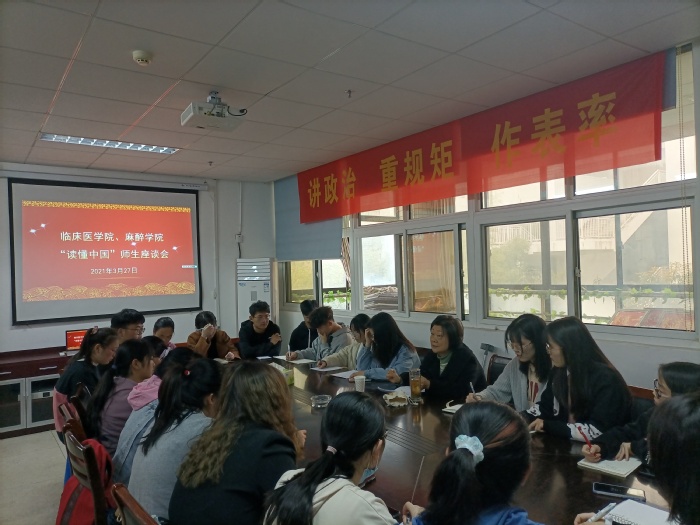 座谈会伊始,杨新庆老师为大家介绍了她与皖医的点点滴滴,以一个老皖医人的身份讲述了她在校期间的工作经历以及公司近年来的发展变化,结合自己和亲人的经历向同学们生动的展示了一个共产党人的初心和使命。随后,杨新庆老师结合时事对我国全面脱贫攻坚战的胜利以及中国全员抗击疫情进行了更深层次的解读。最后,在师生互动环节中,杨新庆针对同学们的提问进行耐心的解答,并寄语同学们“珍惜青春,珍惜光阴,在该奋斗的年纪勇于拼搏。”