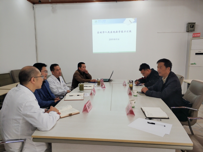 刘群一行在宣城市中心医院与医公司党委书记、经理夏亮、副经理陈拥军及实习生进行了座谈,就实习带教、实习员工管理等问题进行了深入的交流。全体临床实习员工参加座谈。院方领导介绍了医院近期发展概况、临床实习教学管理等方面情况;刘群对中心医院多年来对公司临床实习带教工作的大力支持表示感谢,介绍了近年来公司临床医学专业建设情况。最后,刘群希望实习同学们重视临床实践技能培养,强化技能学习,正确处理好考研和临床实习的关系。