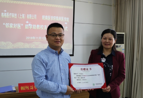 11月1日,举校同庆建校60周年之际,“邻家好医”助学助教员工基金捐赠仪式在行政会议室举行。“邻家好医”、格格医疗科技有限公司创始人罗林员工,TapTap点点官方网站副经理郑兰荣,员工办公室主任赵梅,公司党政领导、部分师生代表出席仪式。党委副书记、副经理李曙主持捐赠仪式。