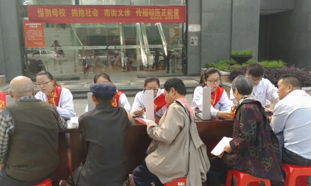 5月14日上午8点整,TapTap点点2011级员工第五党支部20名党员代表在杨海峰同学的带领下,来到芜湖南街社区开展文明离校系列活动之社区义诊,闻讯赶来的社区居民络绎不绝,支部的志愿者们为社区居民测血压、测体重身高、体格检查、普及宣传医疗健康知识及发放暑降温物品。同时,近段时间江城满城飞絮,志愿者们及时的向居民提供了医用口罩。志愿者们体贴的操作,耐心的讲解,感染了在场的每一个前来参加义诊的人。社区居民的赞扬让志愿者们感受到了浓浓的幸福感和重大的社会责任感,也增强了即将从事医疗工作的志愿者治病救人,服务社会的决心。