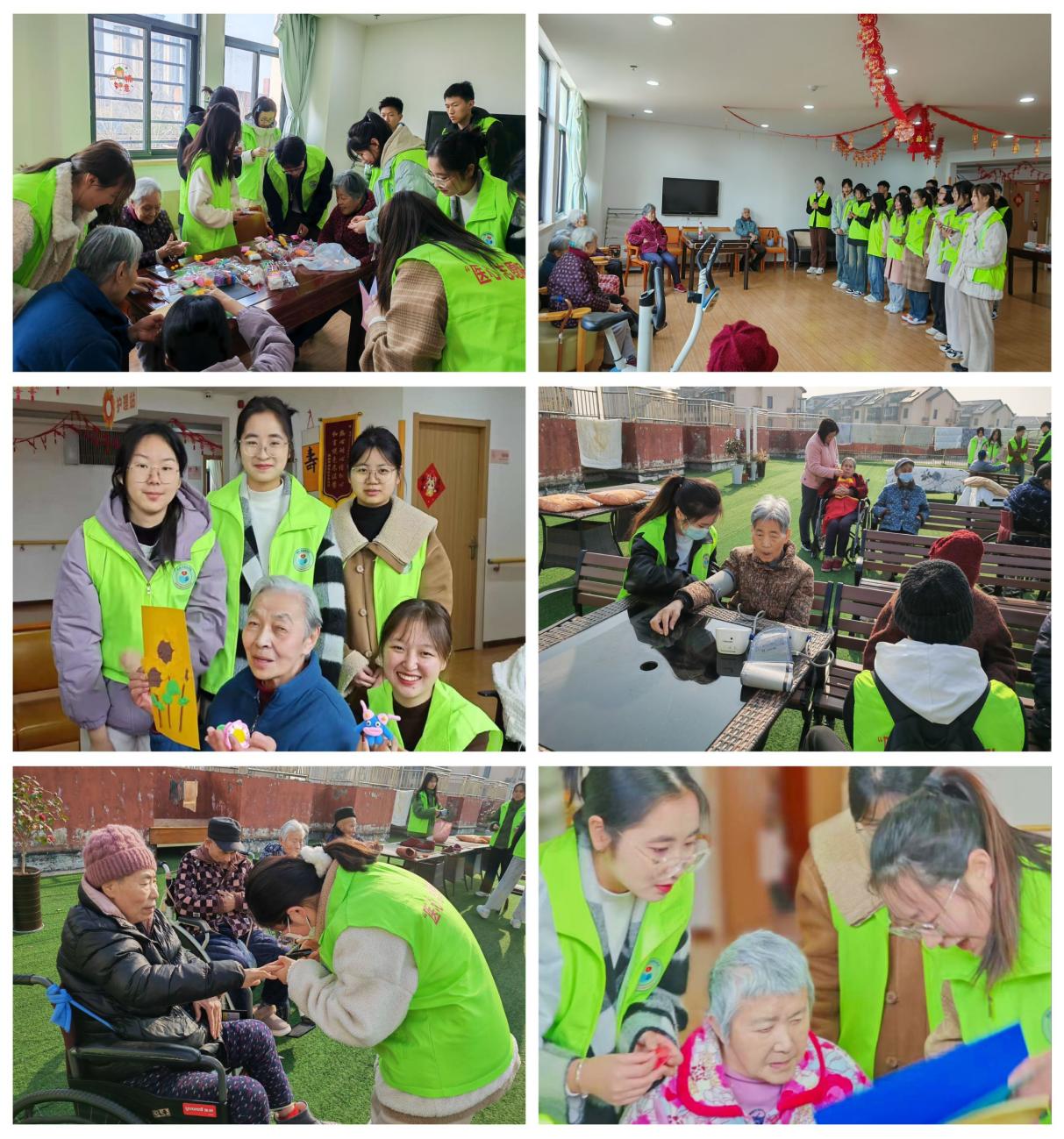 青春暖夕阳,情系敬老院。为践行雷锋精神,弘扬尊老、敬老、爱老、助老的中华民族传统美德,3月9日上午,志愿者们一同前往芜湖市金太阳养老中心开展“学雷锋树新风 敬老院送温暖”活动。志愿者们或帮助老人们测量血压、讲解养生和健康常识,或与老人聊天交流、搀扶老人散步,或为老年人带去才艺表演。同学们用实际行动为老人们带去诚挚的问候和关怀,赢得了他们会心的微笑和热烈的掌声,给初春的敬老院增添了一份温馨。