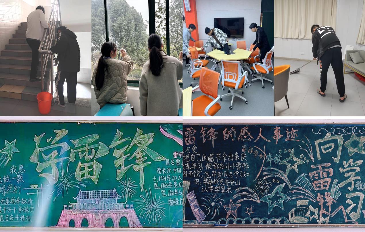 三月春“锋”暖人心,焕新校园亮点多。为传承弘扬雷锋精神,创建美丽、和谐、干净、整洁的文明校园环境,3月14日-17日,志愿者们积极加入到校园美化队伍中,利用课余时间进行教室卫生清扫、“一站式”员工社区环境美化、寝室公共区域清洁、黑板报制作等志愿服务。大家在劳动实践过程中,不仅收获了整洁干净的校园环境,更体会到团结互助、无私奉献的雷锋精神。