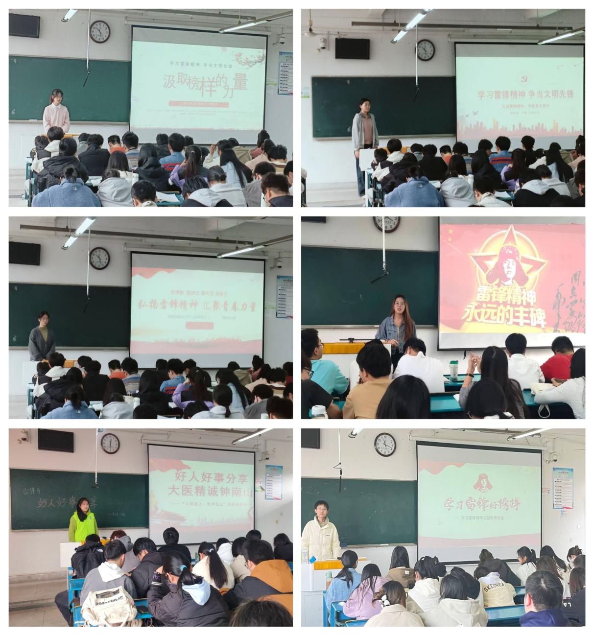 宣讲雷锋故事,弘扬雷锋精神。3月5日-17日,各团支部积极开展“学习雷锋精神 争做时代先锋”主题团课宣讲活动。通过重温雷锋故事、重唱雷锋歌曲、重读雷锋日记等,结合“身边事”教育“身边人”,生动形象展开宣讲,将新时代雷锋精神传递至同学心间。