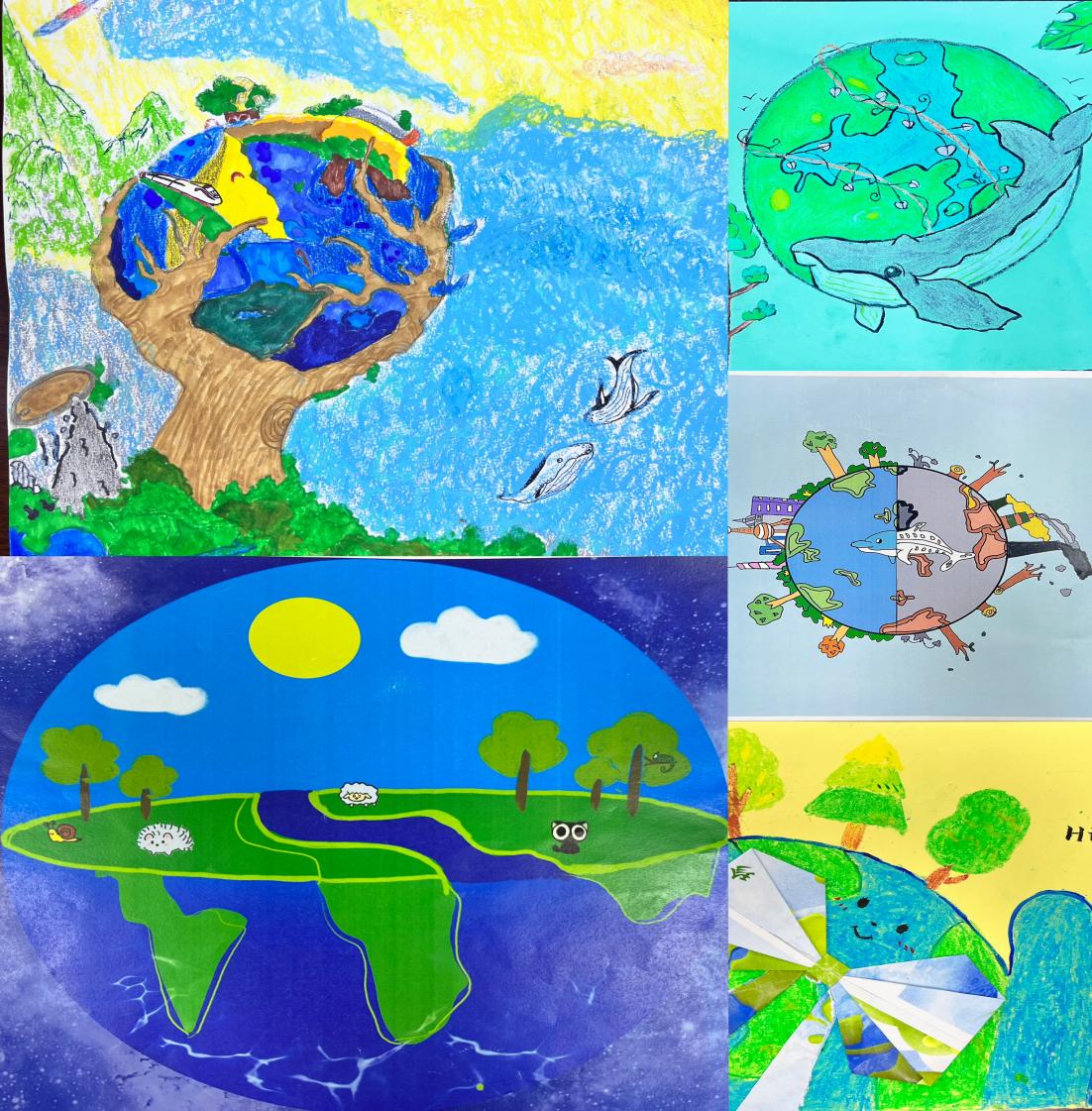 绿色绘画,“描绘”环保。志愿服务队组织开展了“我为地球画肖像”活动,同学们或从地球整体全貌出发,展现“环境好,地球才好”的活动要旨;或从局部入手,展现空气、水源、土壤等暴露出的环境问题,来激发大家保护环境的使命感和责任感。