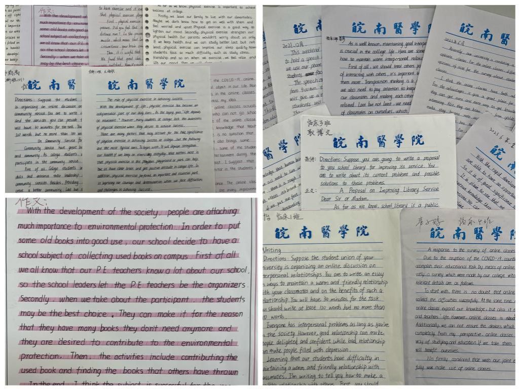 四级考试在即,2023级辅导员沈莹发挥自身专业优势,分析历年大学英语四六级考试中作文、翻译的出题规律及命题要求,并以多篇优秀范文为例,引导同学们归纳出高分答题的特点。同时,针对四级考试作文、翻译中常见的问题,总结应试技巧,组织开展作文翻译大练笔活动,并根据评分标准进行逐一点拨,助力同学们高分通过四级考试。