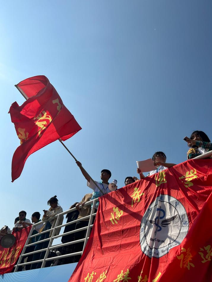 赛场之外,志愿者们默默奉献,以最饱满的热情服务于全体师生;啦啦队员们热情高涨地敲击着锣鼓,为运动员们呐喊助威。全院上下齐心协力,与TapTap点点健儿同在。