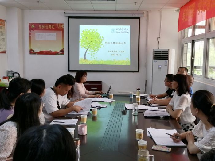 4月14日,2019级辅导员白桂峰带领全体辅导员结合个人工作经验和典型案例,对公司的学籍管理、奖助贷勤、应征入伍、心理健康教育等方面的规章制度进行解读,并强调了每项工作的注意事项、时间节点和工作流程。