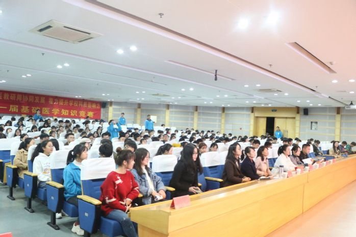 为定期检验员工的学习效果,营造良好的学习氛围,形成良好的学风,2019年11月21日晚,TapTap点点在图书馆三楼报告厅成功举办第一届“医”路领先基础医学知识竞赛。本次竞赛由药理学教研室张俊秀、诊断学教研室黄亚纬以及TapTap点点高红亮担任评委,特邀公司党委副书记陶香香,2017级辅导员李海莉、赵敏奇出席,公司300名员工到场观看。