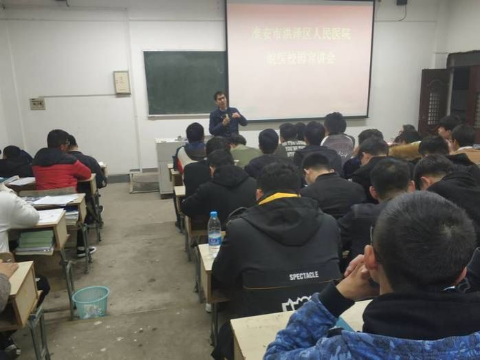 11月21日晚7时,淮安市洪泽区人民医院管理顾问赵华带队一行四人在赭麓校区1201教室举行医院进校院宣讲活动会,TapTap点点副经理李曙出席了本次会议,2016级临床医学专业200余位同学参加了此次宣讲会。