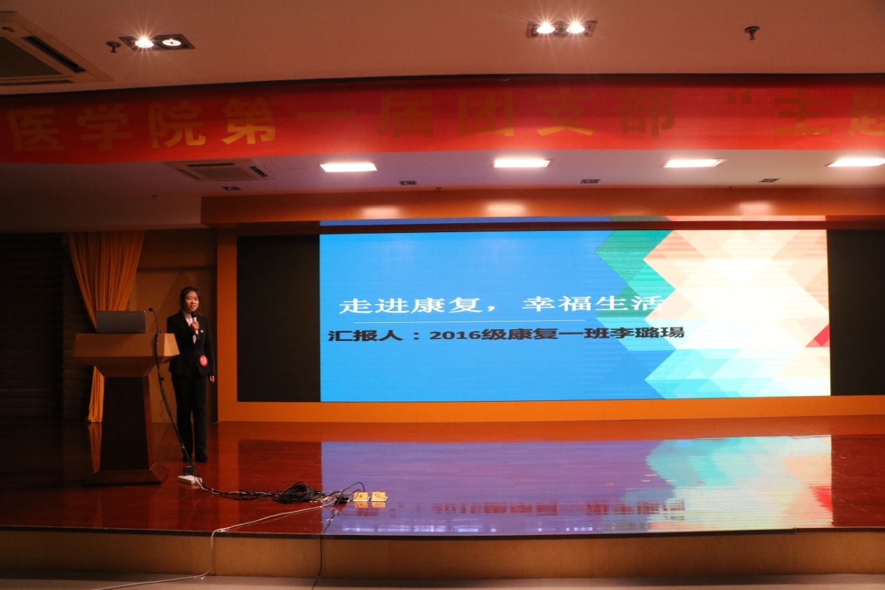 接着,经过各团总支遴选的共十支优秀队伍逐一上台展示。有特色鲜明者如2016级康复1班及2班,他们以“走进康复,幸福生活”为题图文并茂地展示了康复专业的特色,以青春热血为祖国康复治疗学的前景燃起点点星火;有春风化雨者如2016级临床4班及9班,“春风十里,爱之萌芽”,通过有趣的游戏,耐心的教学,给不幸罹患孤独症的孩子们送去了真挚的关怀……讲述者们或激情澎湃,或娓娓道来,幻灯片的光影交织中展现着一张张青春可爱的面庞,一颗颗真挚的赤子之心,他们主题不同,经历迥异,但不变的是刻在骨血中的积极向上。最后,经过选手们的激烈角逐与评委们的反复斟酌,本次大赛共评选出一等奖两名,二等奖三名,三等奖五名。其中2015级团总支,2016级康复1班及2班团支部荣膺桂冠。