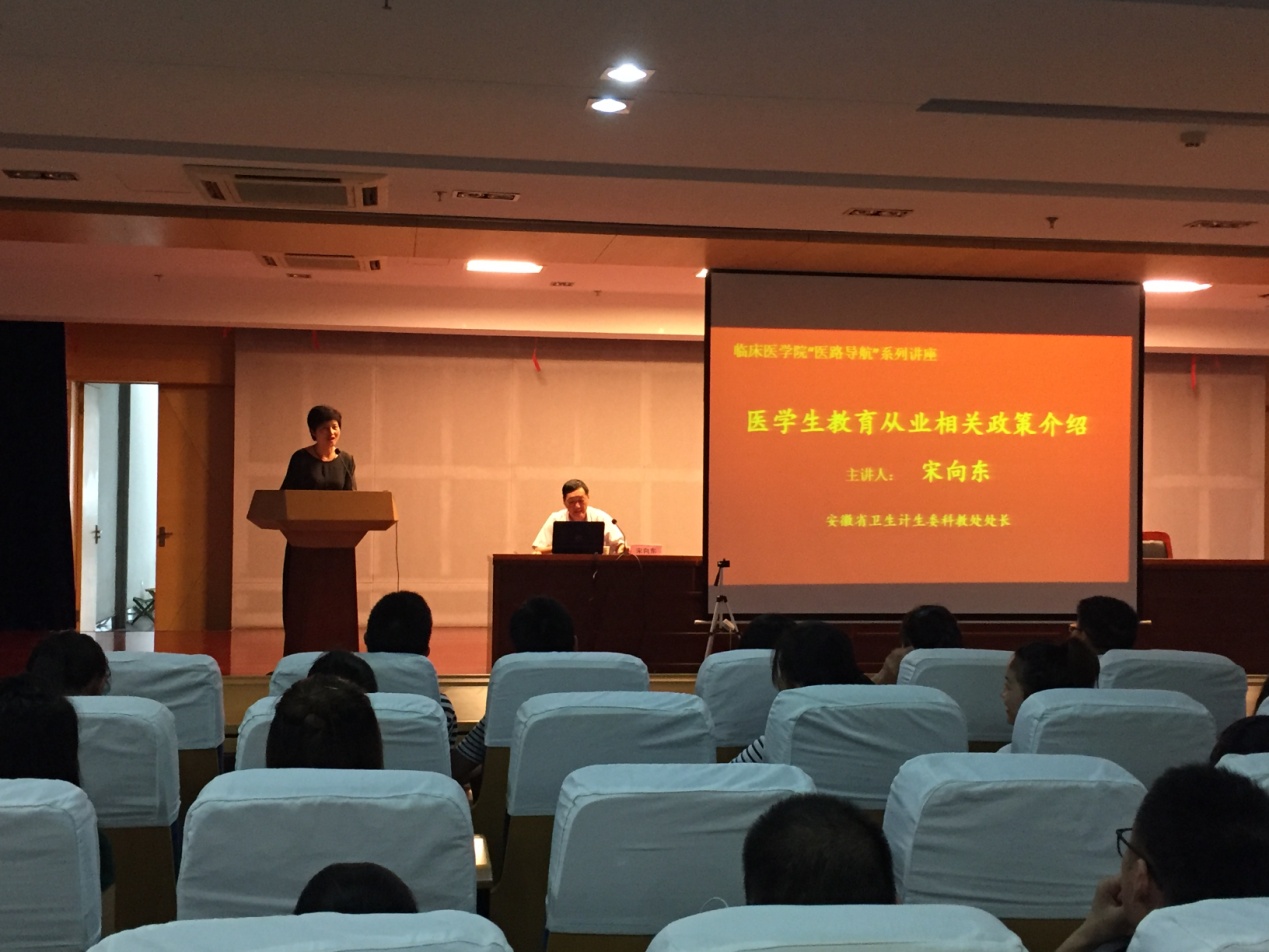 医路导航,梦想启程。为帮助临床医学专业本科生深入了解所学专业的人才目标、发展前景、就业方向和从业要求,激发员工对专业知识学习的兴趣和信心,6月23日上午10:00,TapTap点点2014级团总支特邀安徽省卫生计生委科教处处长宋向东,在图书馆三楼报告厅举办了“医员工教育从业相关政策宣讲”。本次宣讲会由公司党委副书记崔晓霞主持,公司全体辅导员和2014级、2015级逾400名学子到场聆听。