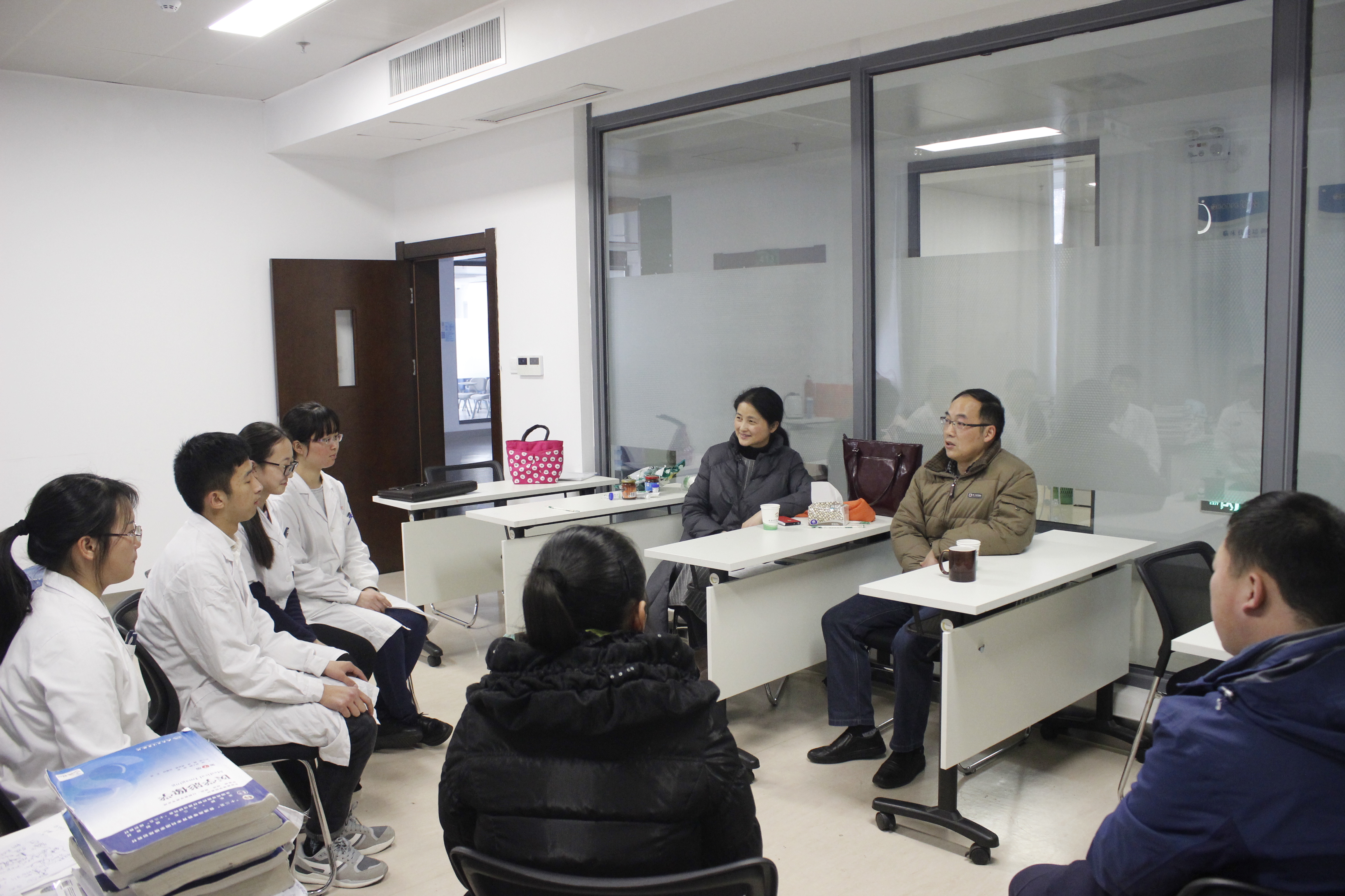第八届全国高等医公司校老员工临床技能竞赛华东赛已进入倒计时,为给公司参赛选手加油鼓劲,2月23日下午,公司党委书记戴睿、党委副书记崔晓霞以及公司秘书王平和2012级辅导员一行前往一附院临床技能培训中心看望四位参赛选手。