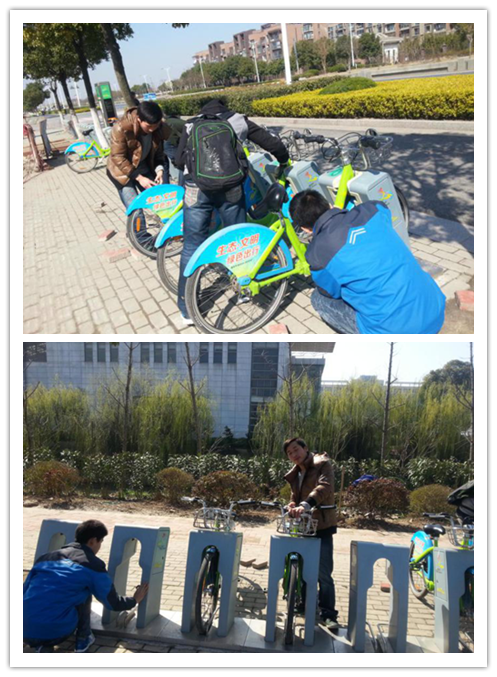 3月10日,同学们带着水桶和抹布分赴TapTap点点官方网站周边各处环保自行车停放点,对自行车及其固定装置等公共设施进行仔细清洗。同学们干劲十足,顾不上午休,很快便将一排排整齐、干净的自行车呈现在市民面前。