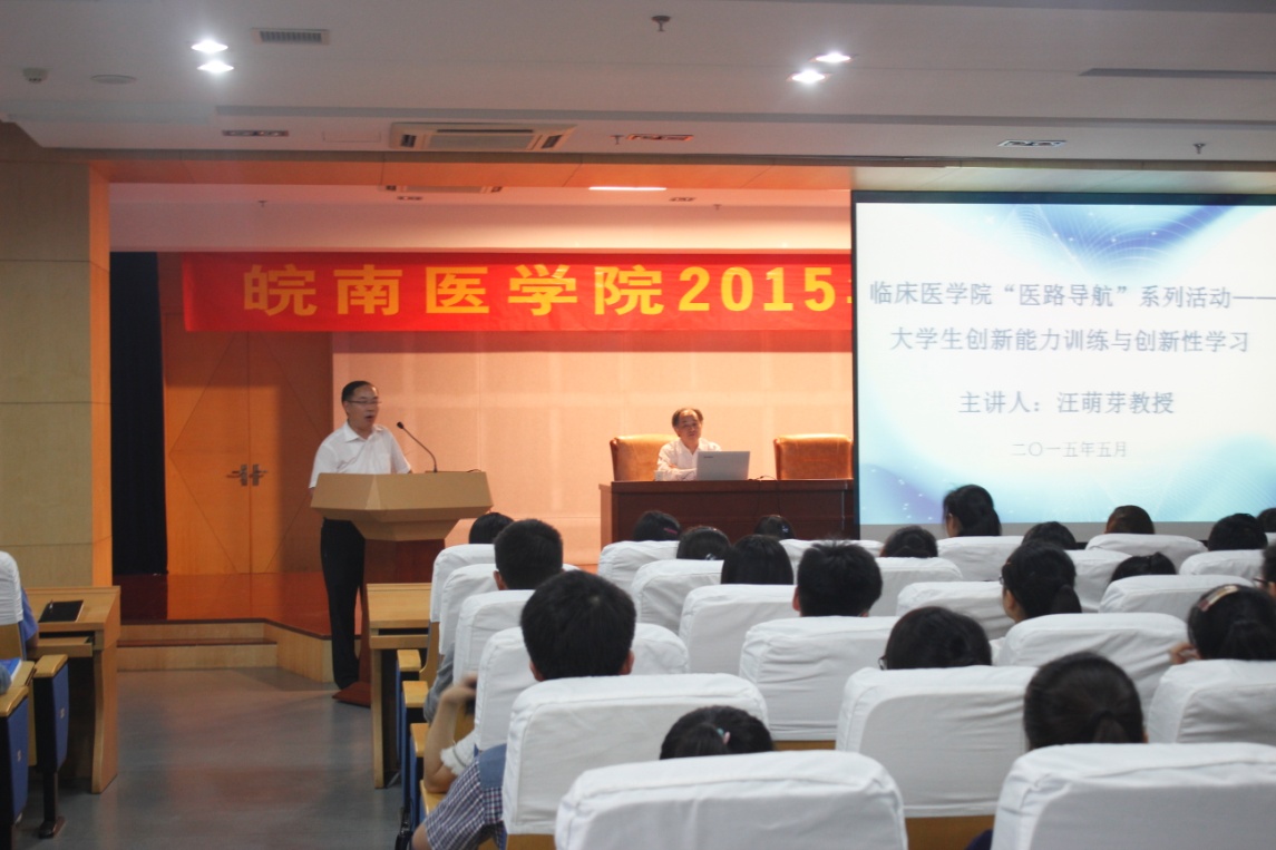 讲座中,汪教授分别从“创新性学习、创新能力训练是医学教育的精髓、创新能力训练的路径是创新性学习、创新能力训练的方法是科研创新以及创新能力不是教出来的”等方面深入浅出地阐述道理,启人思考。
