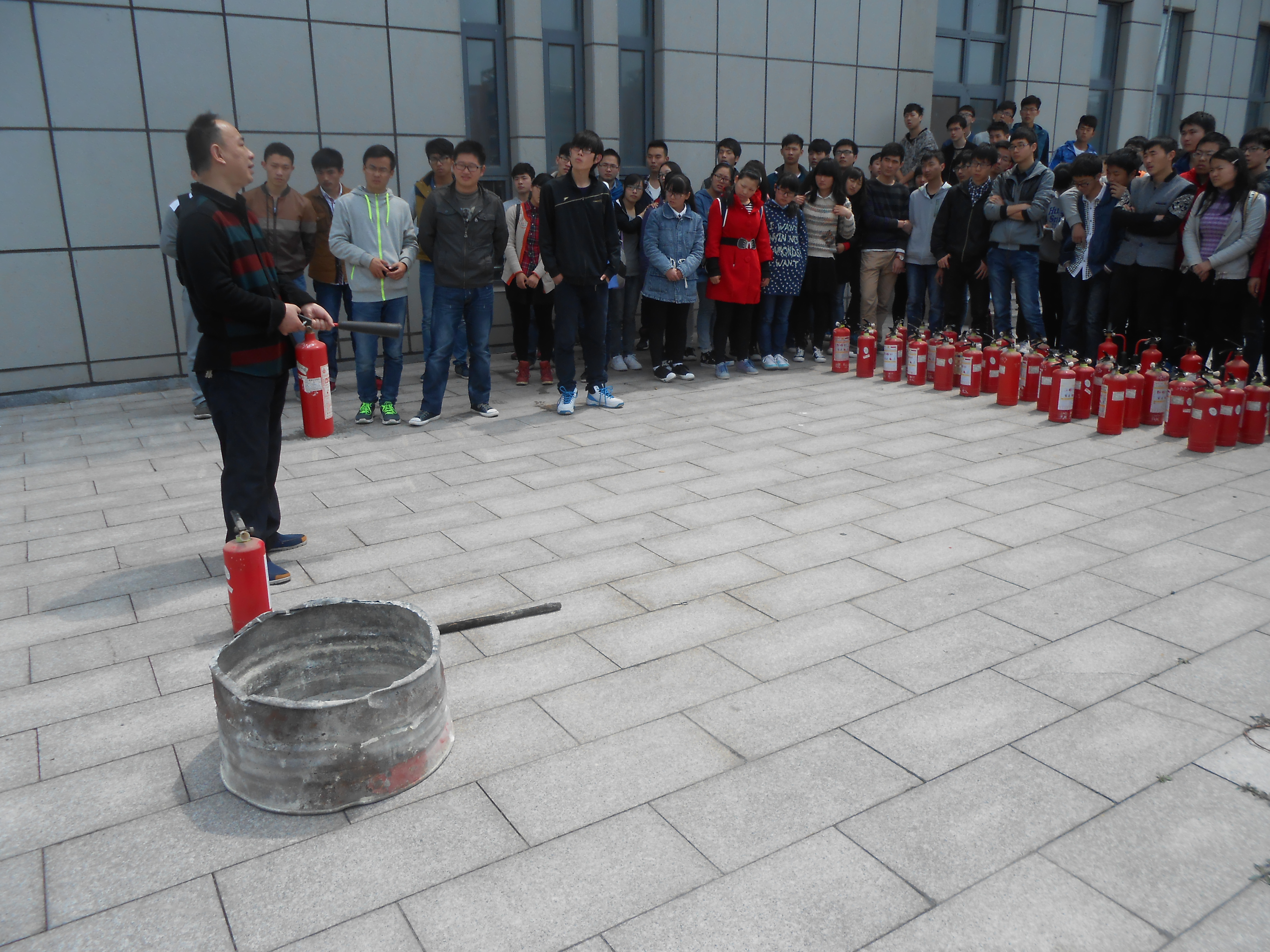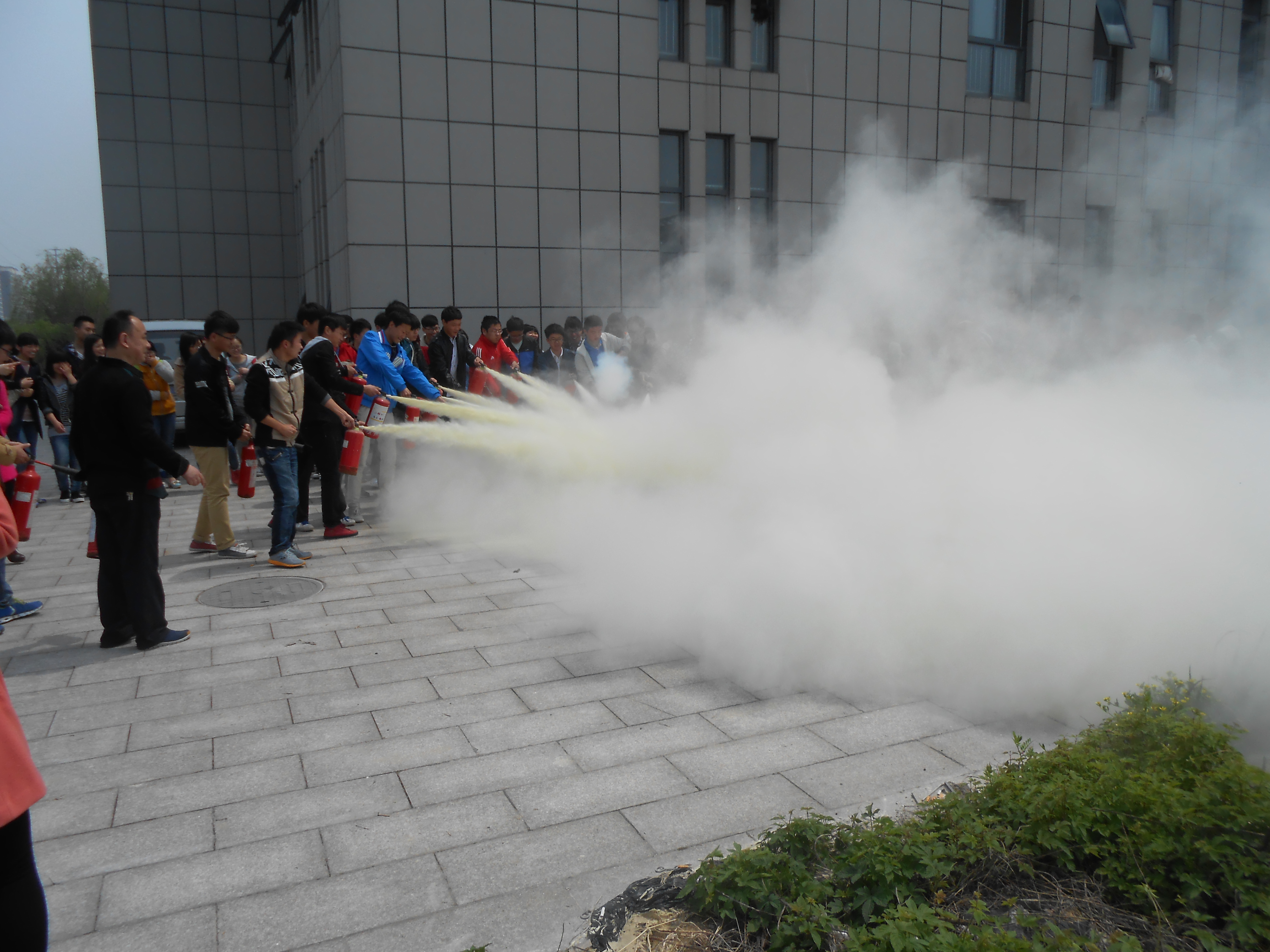 讲座结束后保卫处还组织同学们进行了疏散演练,让同学们亲自体验,当危险来临时,如何最大限度地保护自己,以及如何临危不乱、迅速有序地撤离到安全的空旷场所。随后,在公司逸夫楼广场,保卫处卢老师还向同学们详细介绍并演示了干粉灭火器和二氧化碳灭火器的正确使用方法和注意事项,并指导同学们实战演练,手把手教同学们如何根据风向等,快速有效扑灭火源。这些积极的互动体验无不让大家收益匪浅,感悟颇深。