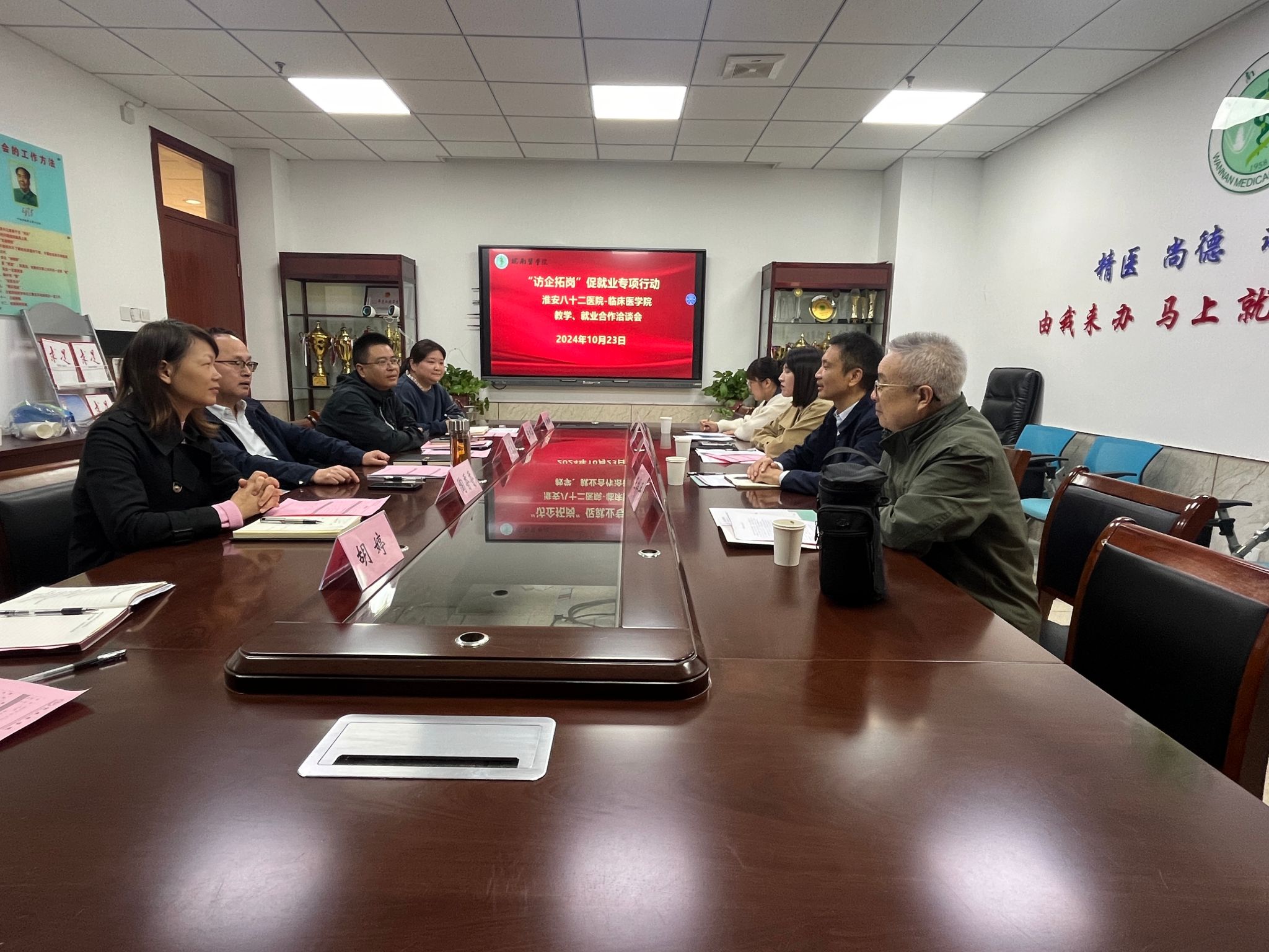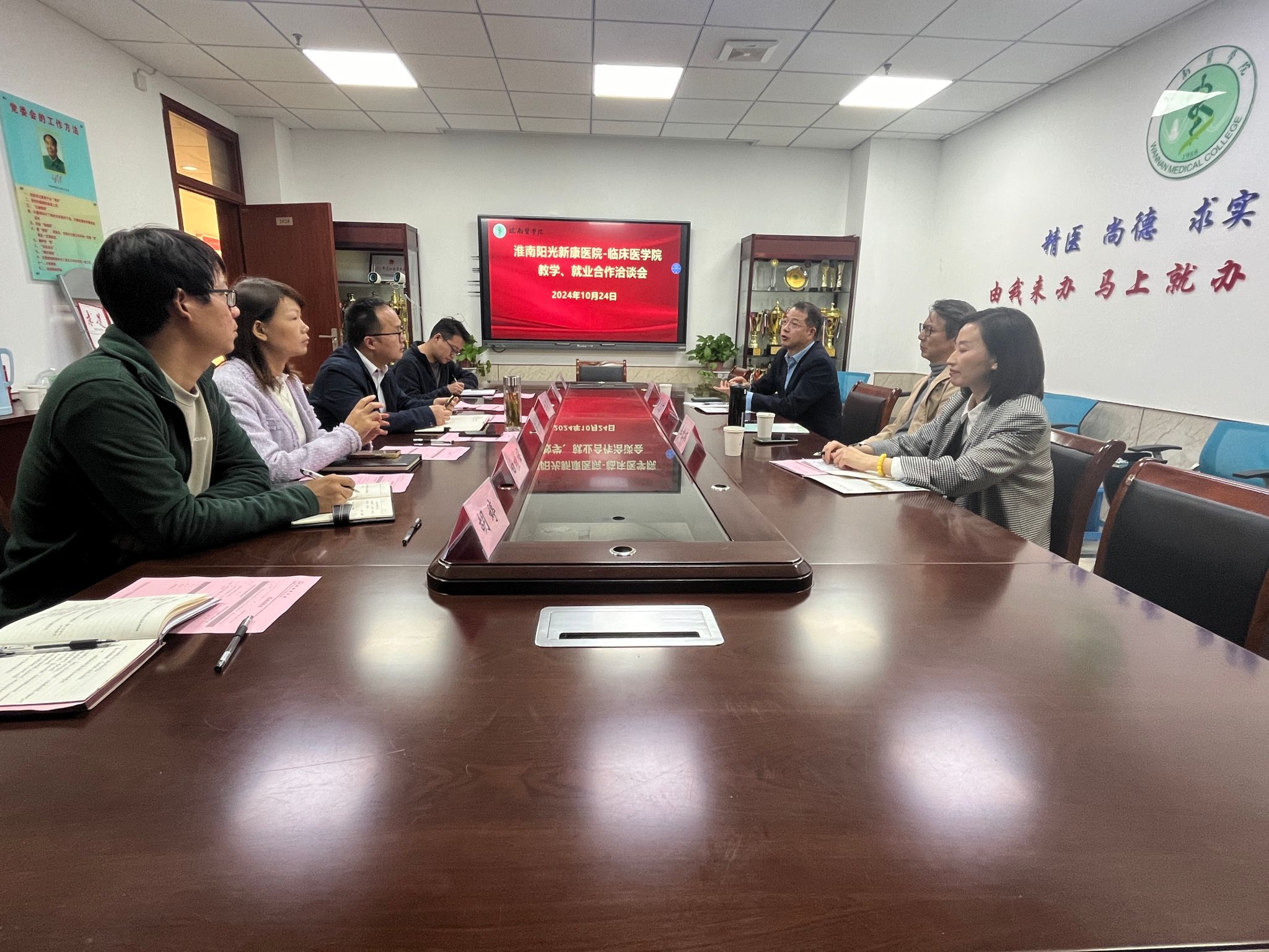 交流会上,方基勇对淮安八十二医公司党委副书记焦峰、淮南阳光新康医院副经理步文广一行的到来表示热烈欢迎,并就TapTap点点基本情况、毕业生整体情况及临床医学专业、康复治疗学专业员工培养情况进行详细介绍。两家医院分别介绍了各自医院发展、科室建设、人才需求及培养等情况,双方围绕员工教学、就业合作等方面进行深入交流。