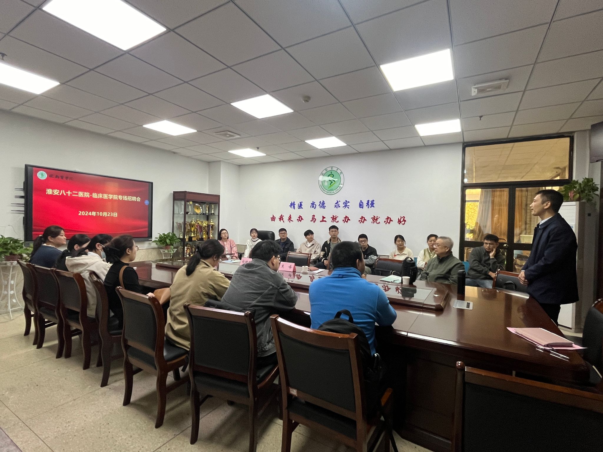交流会后,淮安八十二医院、淮南阳光新康医院分别开展专场招聘宣讲会,两家医院分别从医院概况、人才培养计划、人员需求等方面进行宣讲,并解答同学们所关心的招聘流程、职业发展、薪资待遇、工作生活环境等问题。宣讲结束后,毕业生结合自身实际积极投递简历。