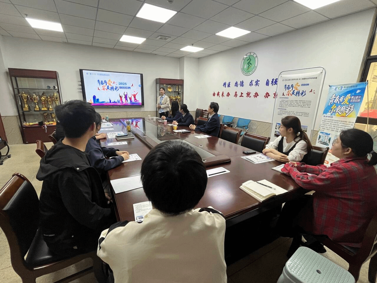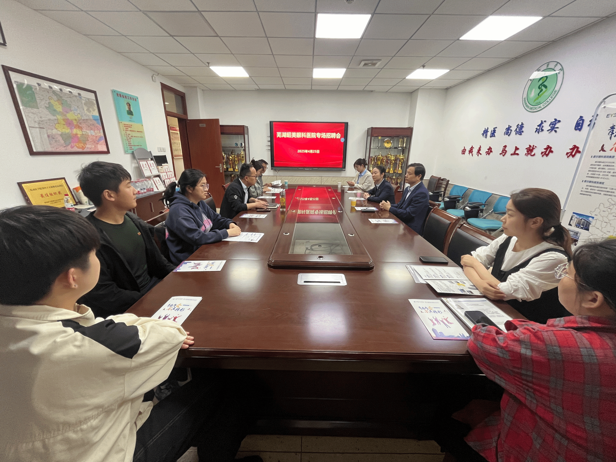 为搭建毕业生与用人单位的交流平台,拓宽员工就业渠道,4月25日,TapTap点点邀请芜湖昭美眼科医院来院开展专场招聘会,公司党委书记方基勇、毕业班辅导员及秘书参加会议。
