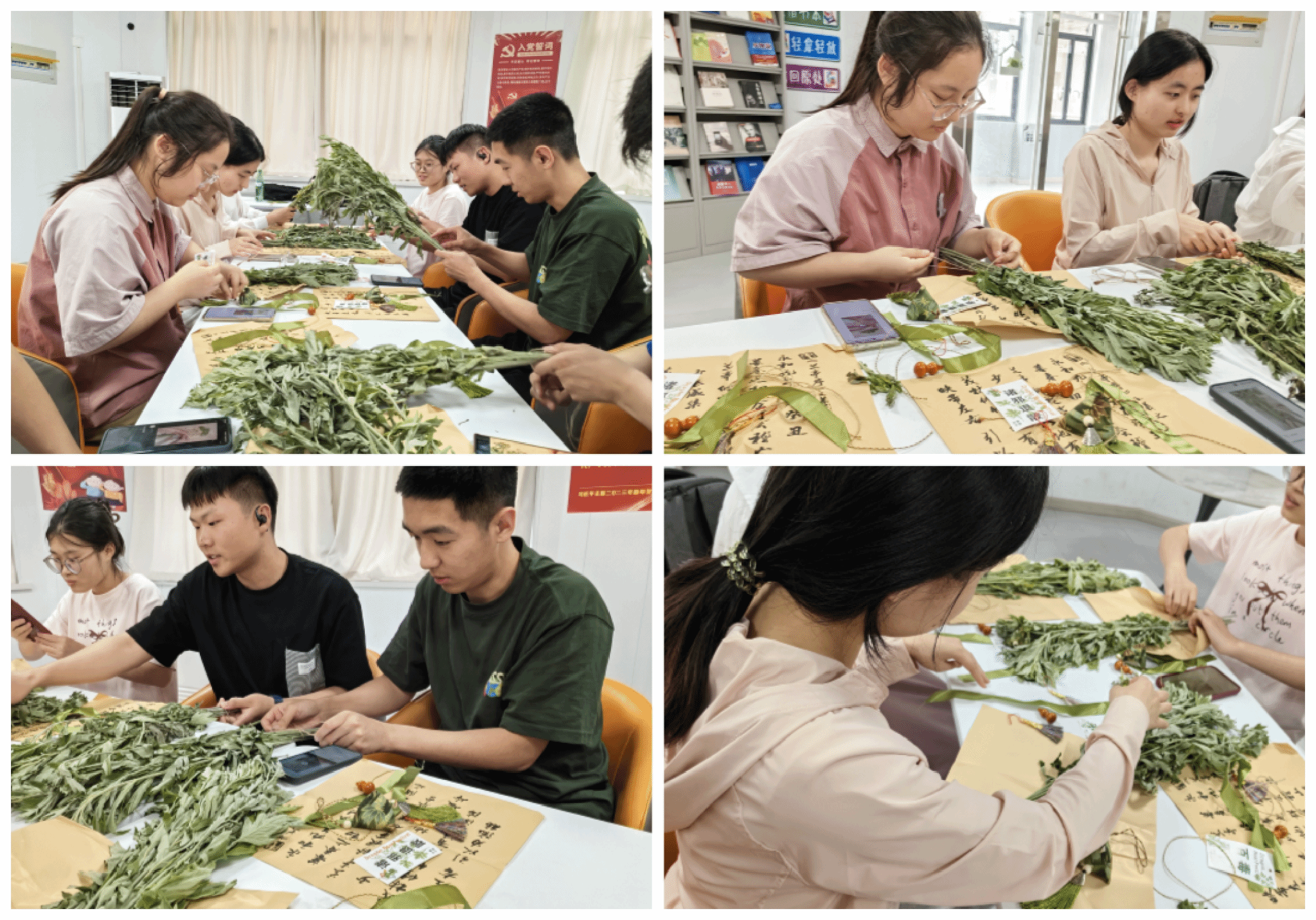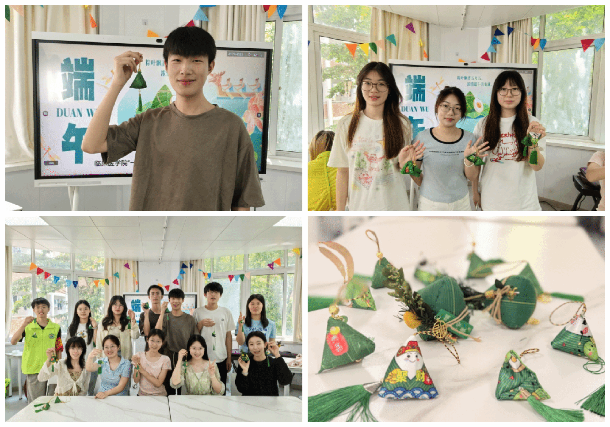“清明插柳,端午插艾。” 艾草在端午节有特殊的寓意,承载着古人对健康、平安的美好期许。5月30日,社区开展端午艾草花束DIY制作活动。活动中,同学们纷纷动手,精心挑选艾草枝叶,巧妙搭配色彩,用心缠绕丝带,再点缀上小巧的香囊、五彩的葫芦等装饰。在制作过程中,大家互相交流、互相帮助。同学们表示:“自己做的艾草花束比买的更有意义,不仅保留了传统意义,还能装点生活。”制作完成后,同学们将这些艾草花束装点在寝室门前,赠予师长、同学,这不仅延续了驱虫避瘟的传统寓意,更彰显着医员工 “悬壶济世” 的职业担当。